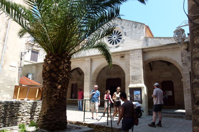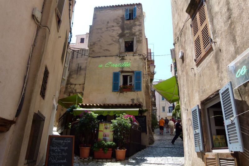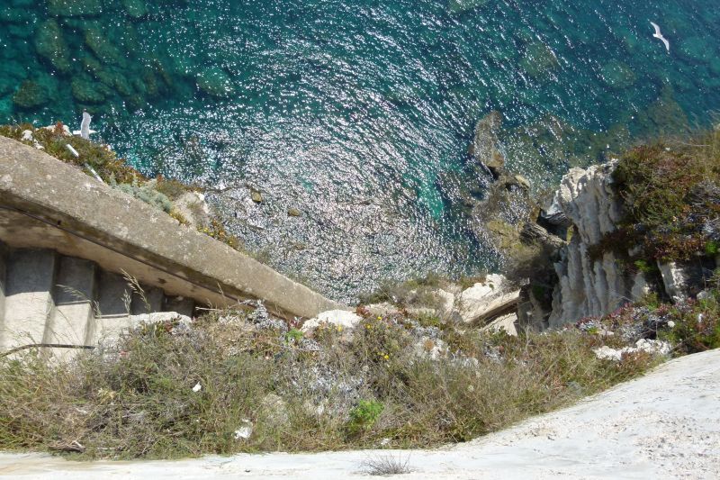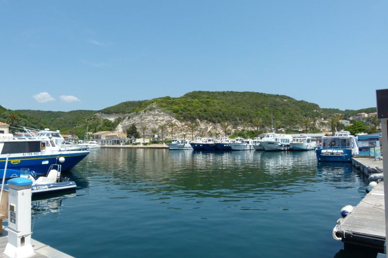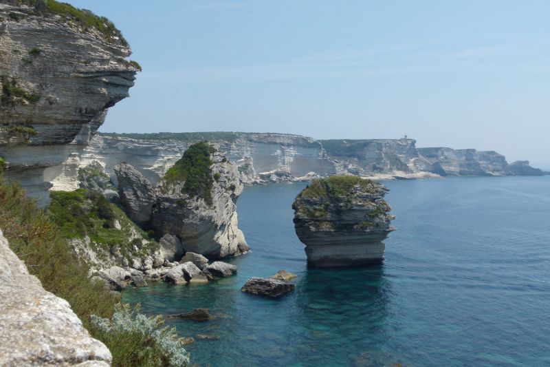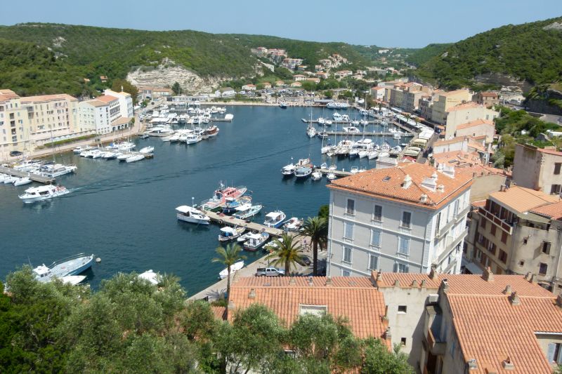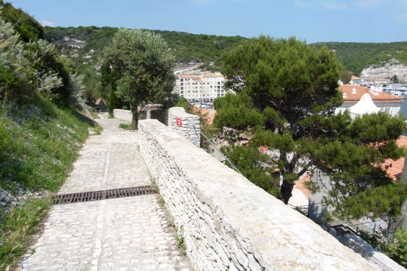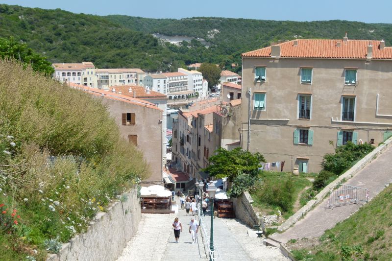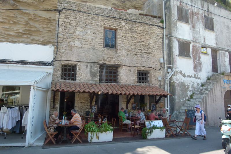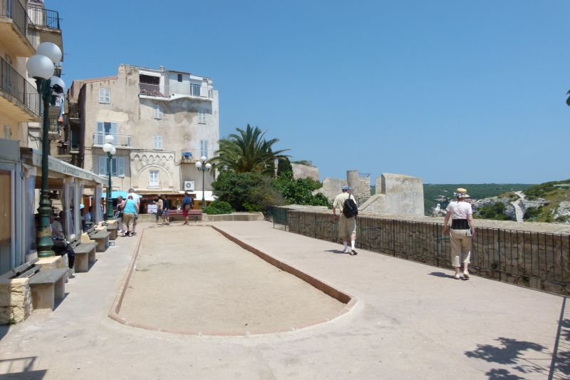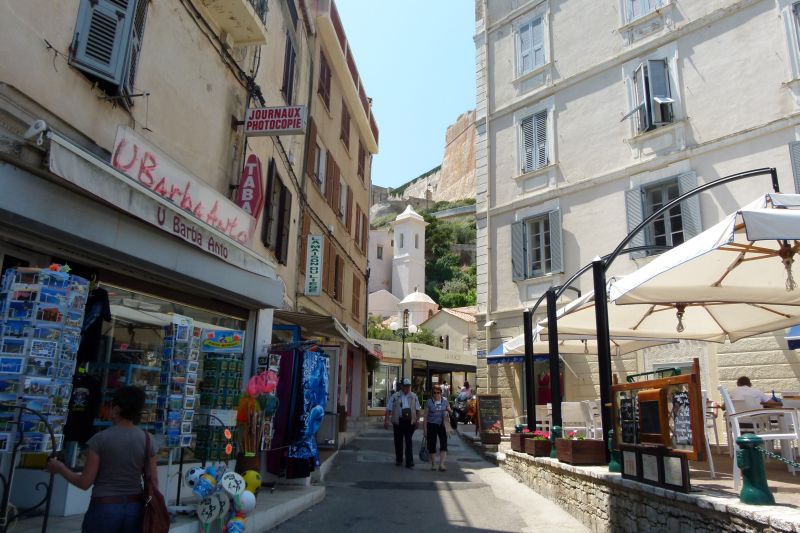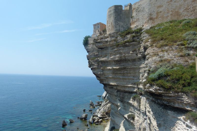 Debout avec le soleil, le chien se réjouit de nous voir et remue la queue en allant de l’un à l’autre. Nous nous affairons pour le remballage juste après le petit déjeuner. Je regarde le chien et me demande si nous n’allons lui manquer un peu. Un dernier coup d’œil sur la plage et nous sommes de nouveau sur la piste… Nous empruntons la route en direction de Bonifacio et fait rare nous roulons un bon moment en ligne droite. Nous arrivons assez vite sur la ville. Halte pour la visite. Nous partons à pied du port vers la citadelle et les autres prennent un petit train. La ville est très belle mais en 2 heures chrono nous n’avons pas trop le temps de tout voir ; encore une bonne raison de revenir en Corse pour profiter de ces belles falaises blanches coiffées d’une citadelle qui surplombe la mer. Retour au parking et départ à la recherche d’un autre camping. Nous en trouvons un bien sympa. Cette fois-ci, c’est un chaton noir et blanc ( le sosie de Félix) qui nous tient compagnie. De nouveau nous grillons une belle entrecôte et la soirée se passe toute en douceur malgré quelques moustiques. |