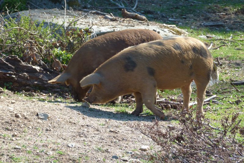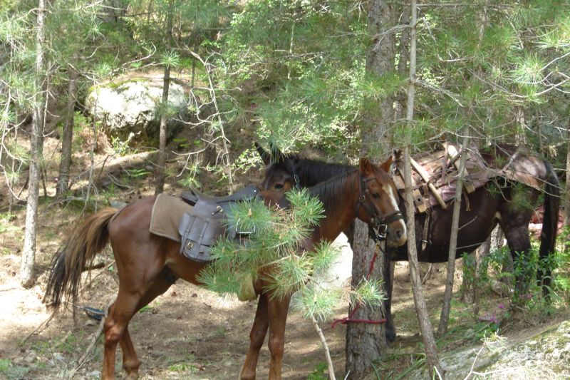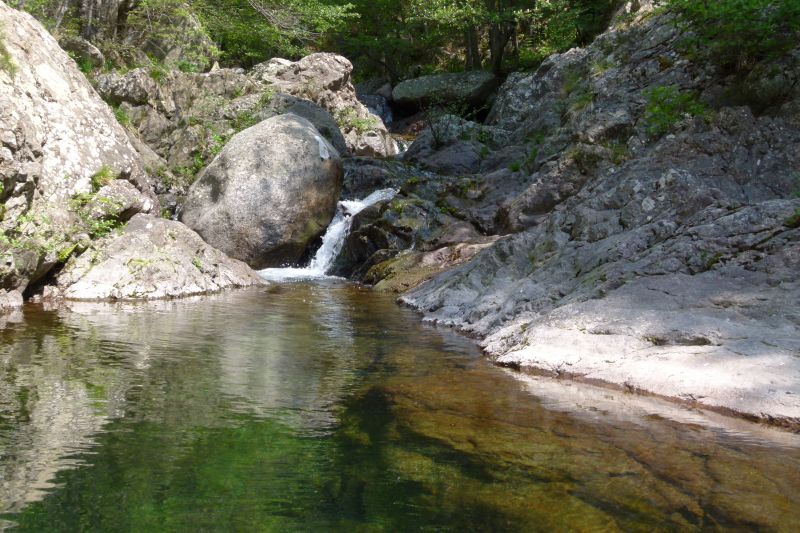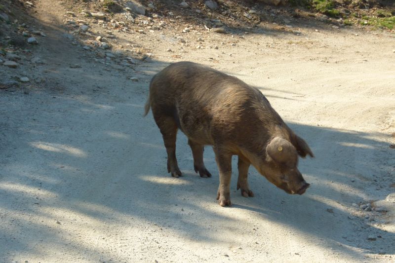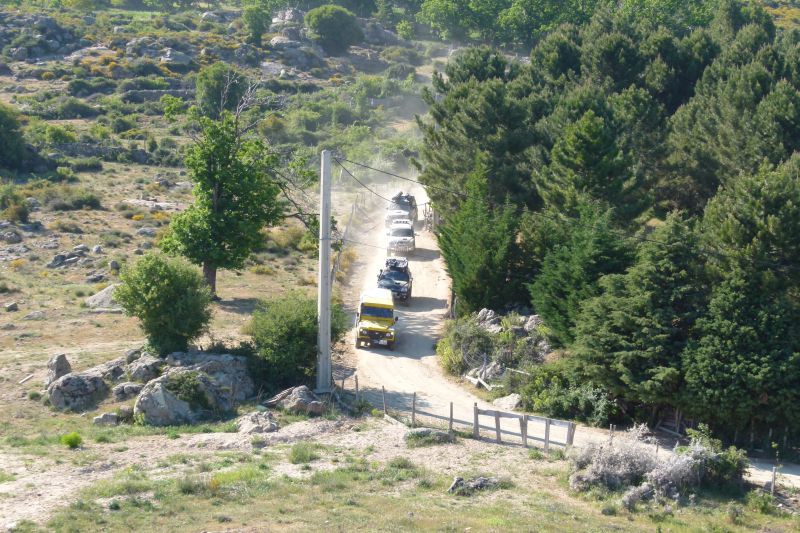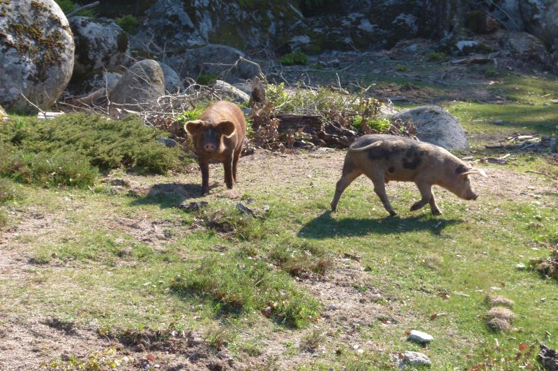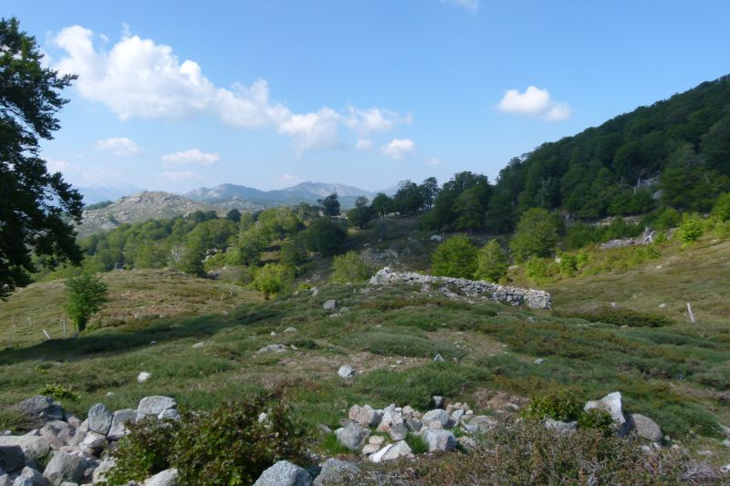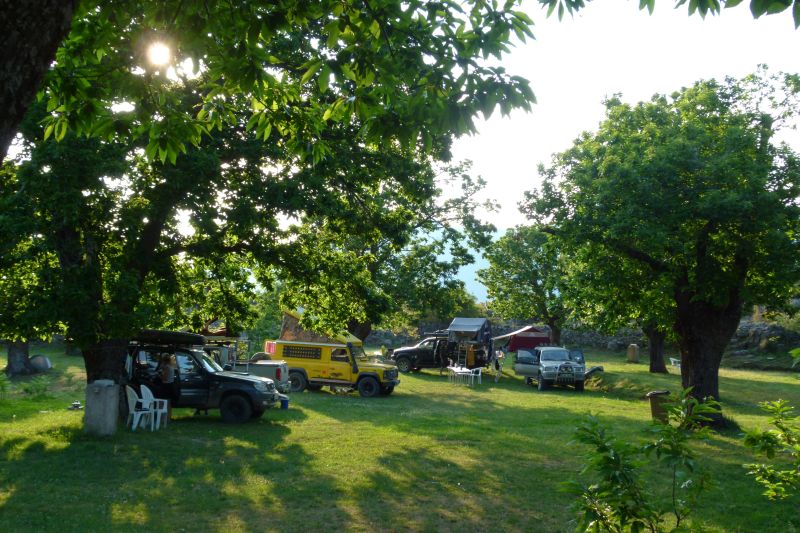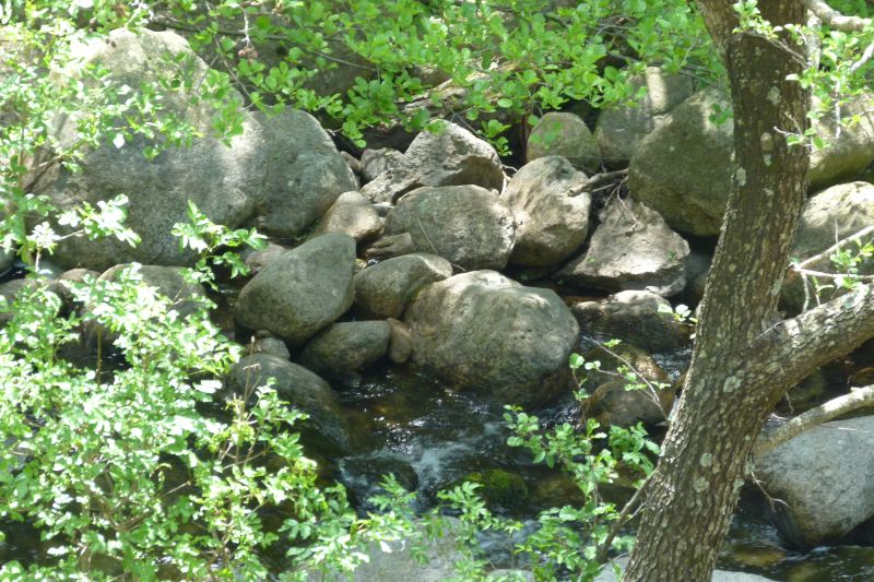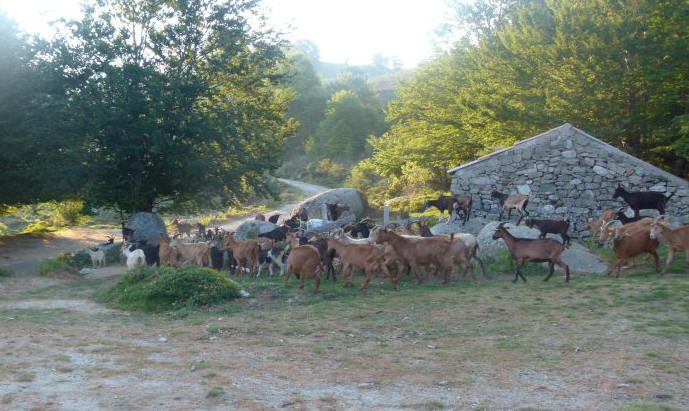 Mardi 24 mai, Le matin est frais et je me lève très tôt car j’entends les chèvres qui s’agitent à l’approche du berger qui vient pour la traite. Je lui demande si je peux regarder il est au milieu de ses bêtes dans l’étable et j’ai du mal à le voir, il en trait au moins 40 et ensuite il les lâche. Elles passent toutes devant moi, les plus espiègles font des cabrioles en me regardant. J’aimerais demander plus de détails au berger mais j’ai l’impression que je le dérange ou alors c’est un timide. Après le petit déjeuner, nous allons dire au revoir à nos hôtes et nous repartons. Cette fois-ci pas de piste mais une belle route qui suit des gorges magnifiques. Nous faisons halte à Corte pour les provisions mais pas de visite de la ville (dommage). Nous repartons et nous arrêtons plus loin au bord d’un lac de barrage où nous pique-niquons. Nous arrivons au camping Monte Cintu en début d’après-midi et je descends avec Cornelia pour visiter et retenir la place, pendant que les autres continuent sur la piste jusqu’au sommet. Le camping est calme et pratiquement vide. L’endroit est apaisant et nous en profitons pour boire un café à la buvette du camp. Les autres redescendent et nous installons le campement. Le soir je cuisine une omelette au brocciu (et elle est presque aussi bonne que celle que j’ai mangée la veille). Les autres grillent. Soirée calme… |