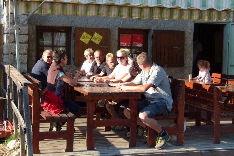 die Gastgeber der Bergerie und einheimische Gäste an der