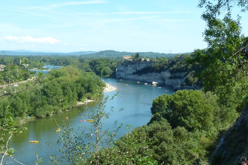 Samedi 13, Vers 7 heures tout le monde est réveillés, et, comme convenu la veille nous partons de suite et ferons une halte dans une heure pour le petit déj. Mélanie ne se sent pas bien car elle a rendu cette nuit. Pour elle le voyage va être inconfortable mais nous n’avons plus le choix il faut avancer. Deux heures plus tard nous faisons halte sur le parking d’une superette et prenons le petit déjeuner avec une baguette fraichement achetée. Mélanie boit une tisane. Après avoir donné le biberon à la voiture nous repartons sous un beau soleil et le mercure au alentour des 24°C Nous contournons la belle ville de Langres en suivant ses remparts puis nous rejoignons l’autoroute. Bernard se trompe sur les bretelles d’accès par contre les enfants qui nous suivent sont sur la bonne voie. Nous les contactons par téléphone pour leur dire que nous devons faire demi-tour. Coup de l’opération : 20 km en sus. Un peu avant Lyon nous faisons la pose déjeuné sur une aire de repos. J’avais préparé la sauce bolognaise la veille et il ne restait plus qu’à faire cuire les spaghettis. Nous mangeons sous le soleil et l’air ambiant à 27°C. Avant de repartir nous troquons les pantalons pour les shorts. Nous passons Lyon sans encombre par le tunnel de Fourvière.Vers Valence nous quittons l’autoroute et empruntons la D 86. nous suivons les berges de la rive droite du Rhône en passant par de fort beaux villages. Tous, ou presque, ont des ruines de château ou de fortifications perchés sur les hauteurs. La vitesse se trouve réduite au alentour de 60 km à l’heure et je commence à trouver la route bien longue bien qu’elle soit bien jolie. Vers 7 heures nous atteignons St Martin d’Ardèche où le monde se presse dans les ruelles. Les campings que nous voyons en passant sont tous complets. Nous allons jusqu’à Pont St Esprit où nous en trouvons un sous un pont et au bord de l’Ardèche. L’installation se passe difficilement car Bernard en manœuvrant coince la roue avant du pick-up sur une pierre. Il s’en suit un dépannage d’une bonne demie heure pour se dégager à l’aide du crique et de quelques planches sous les yeux de pas mal de campeurs dont nous sommes l’attraction du soir. Il fait presque nuit quand nous cassons la croute. Tous épuisés, nous allons au lit sans tarder. |