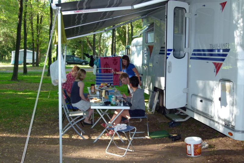 zum Campingplatz. Hier wurde unser Abendessen zubereitet. Während dessen zog ein Gewiitter über uns hinüber und wir ließen die Marquise heraus und zogen eine Seitenwand ein. Jeder übernahm bei einem Apero eine Aufgabe und um 20Uhr gab es Entrecôte, Karteffelspalten und Salat. Nach dem Abendessen duschen und dann gingen wir noch zur Rezeption, wo ein Alleinunterhalter gute Musik zum Tanzen machte. Als bestes Tanzpaar des Abends (wir waren auch die Einzigen, die tanzten) gewannen wir eine Flasche Wein . Um 23.30 Uhr lagen wir dennoch wieder im Bett, müde von den anstrengenden Unternehmungen. |