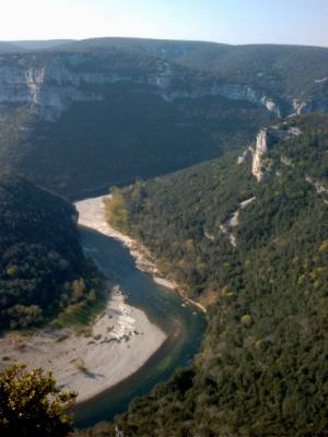 Ende des Gorges bei St. Martin d'Ardéche weitet sich das Tal der Ardèche