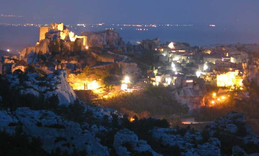 Nach einem Spaziergang durch die sich nach der Mittagszeit wieder mit Leben füllende Stadt kehrten wir zum Auto zurück. wo wir den Grill anwarfen und den Sonnenuntergang mit Les Baux de Provence als Hintergrund genossen